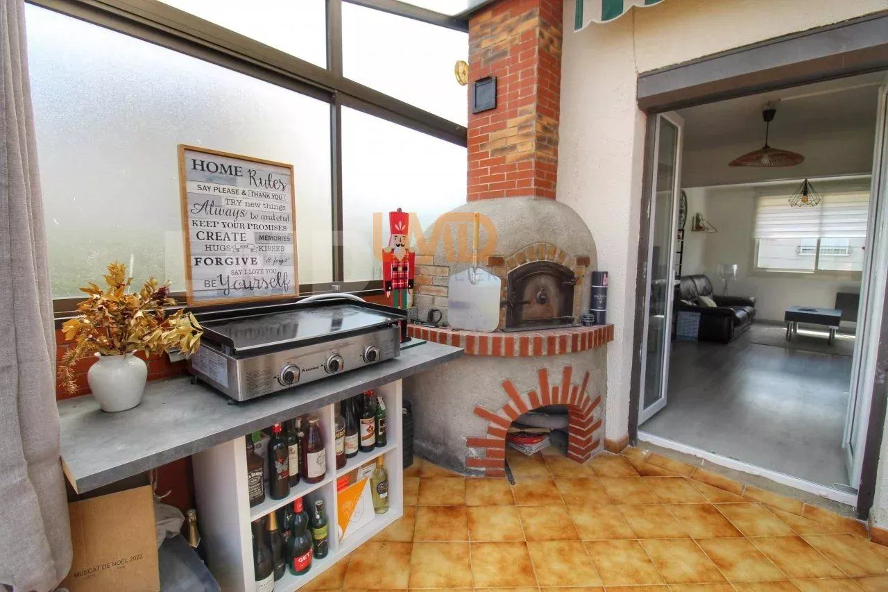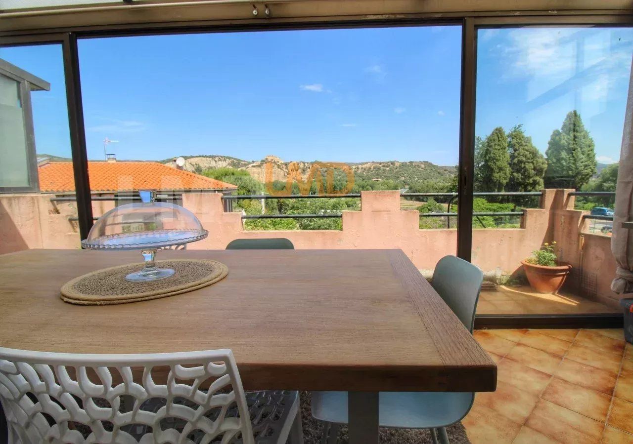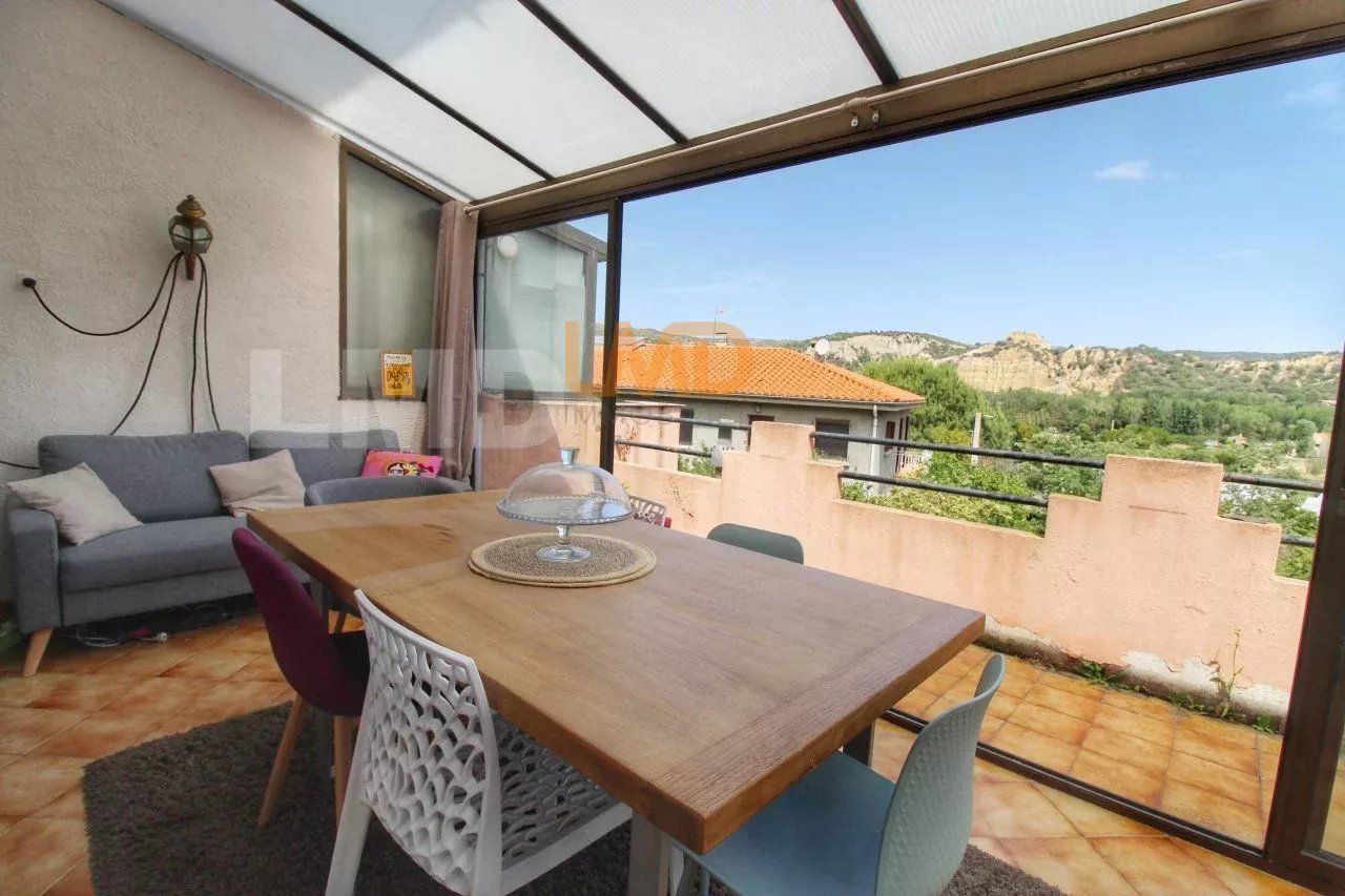 Pièce de vie climatisée et cuisine de 30m2, donnant sur une terrasse et sa magnifique vue sur les Orgues d'Ille sur Têt.