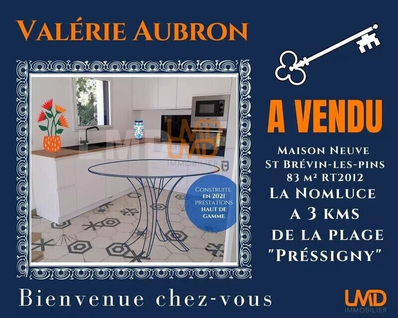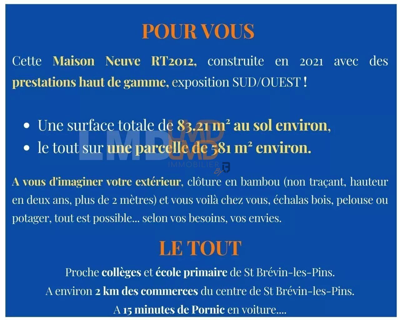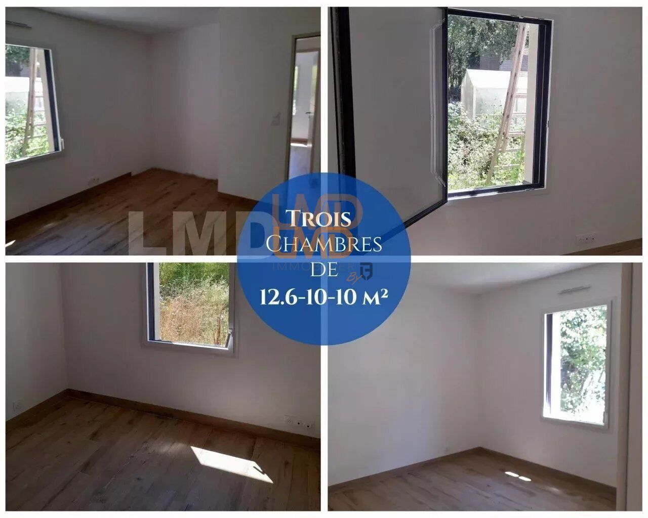 Pour vous cette maison de 2021 de plain-pied (83 m²), prestations haut de gamme, 3 chambres, une pièce à vivre avec sa cuisine ouverte aménagée et équipée de 30 m² environ, salle de douche, cabinet de toilette séparé, cellier.