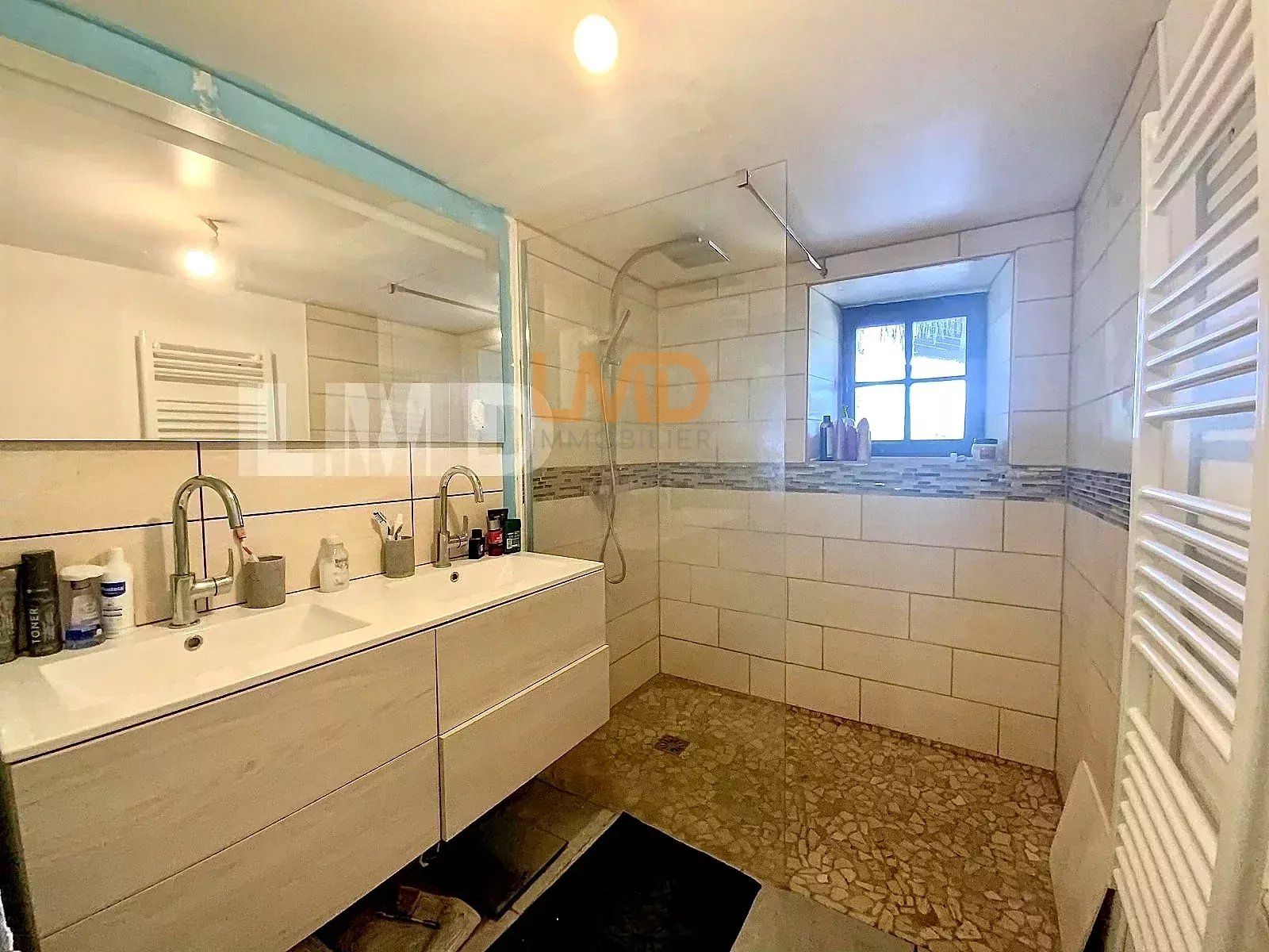 - rez-de-chaussée : salon/séjour avec poêle à bois Godin, cuisine aménagée et équipée d’un piano de cuisson, salle d’eau avec douche à l’italienne, toilettes séparés et une chambre.