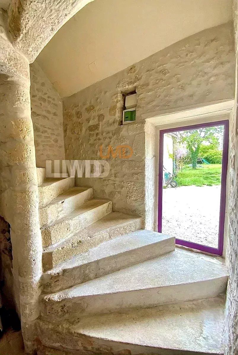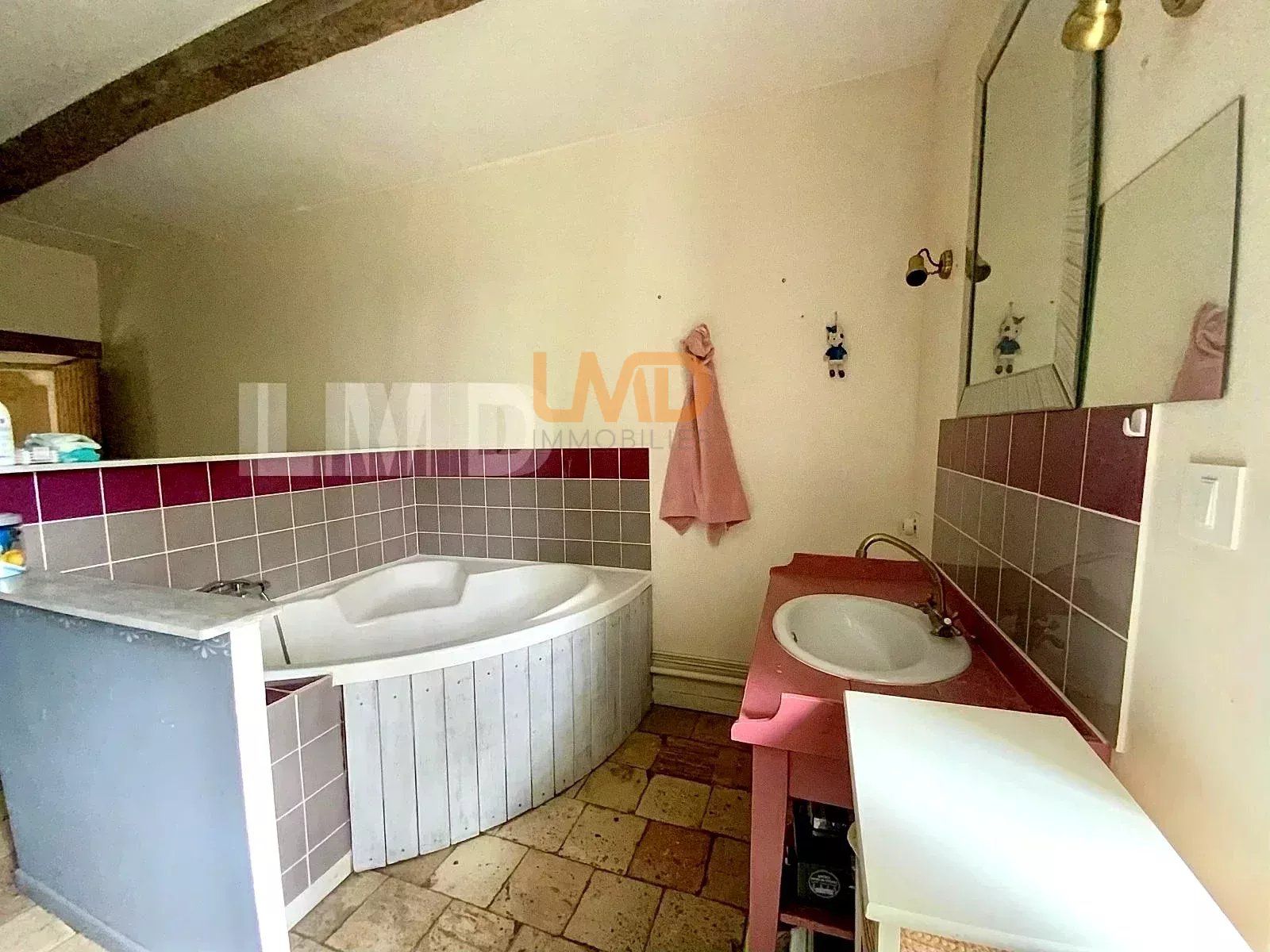 À l’étage : accès par bel escalier à vis, une chambre, une suite parentale avec baignoire et un dressing.