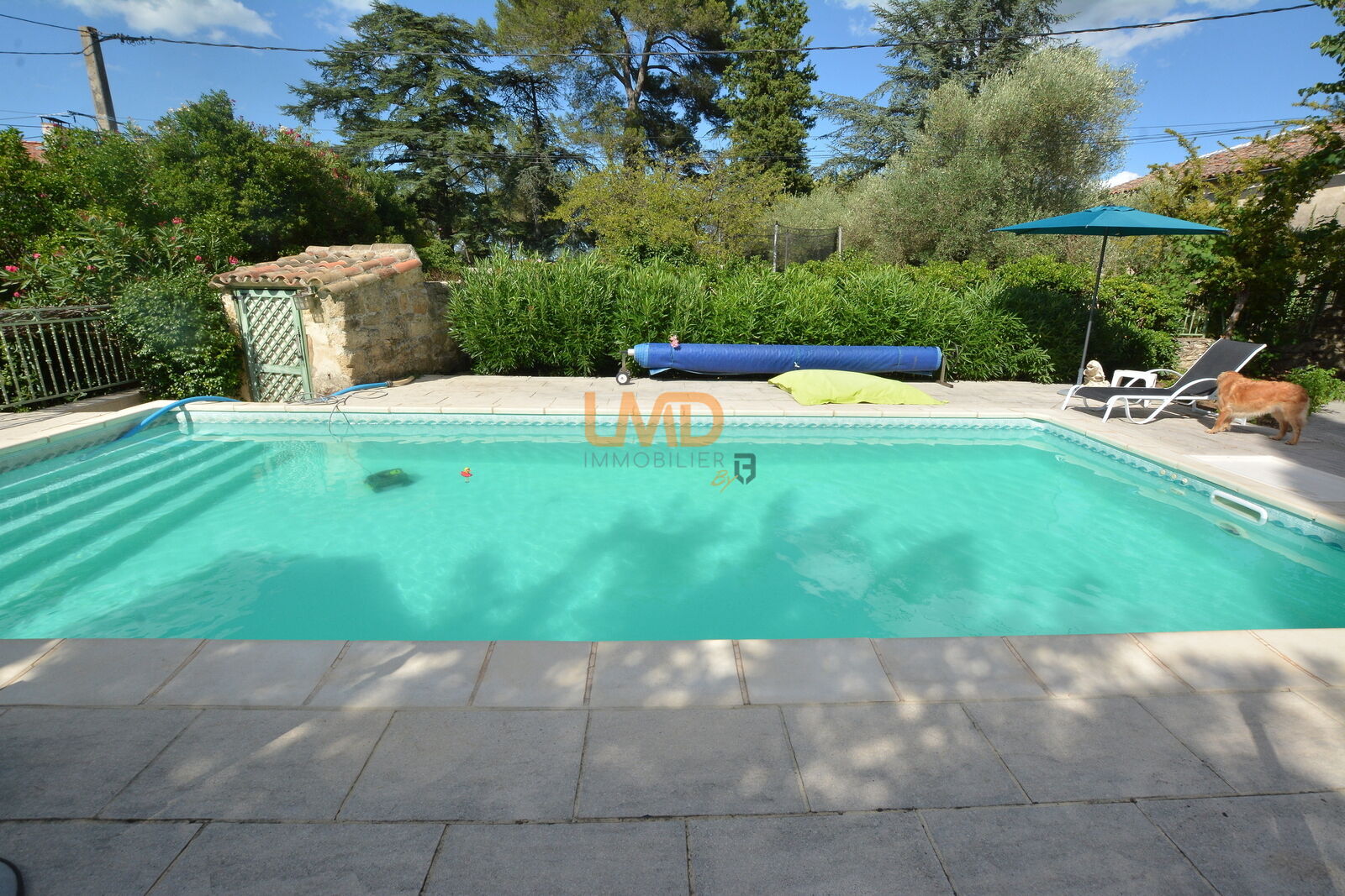 L'espace extérieur est fabuleux, la piscine est sécurisée avec barrière adaptée, une douche d'été, une grande plage dallée permettant de placer de nombreux transats et tables, assez ombragée pour faire la sieste. Une bâche d'hiver restera pour protéger la piscine.