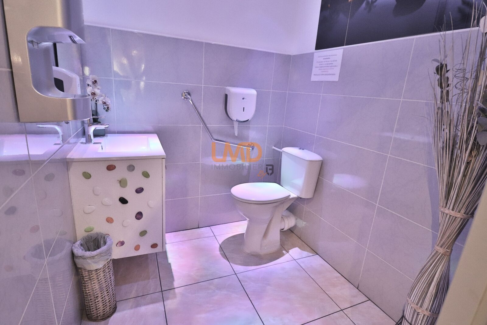 Salle idéale pour minimum 30 à 40 couverts, cuisine entièrement équipée avec extracteur et porte arrière pour les livraisons, wc PMR, bar pour accueil et caisse.