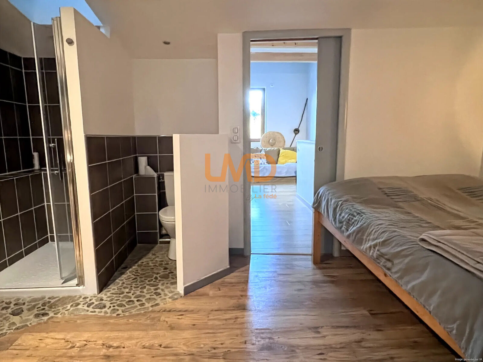 La maison est équipée d'un système de chauffage complet comprenant le bois, l'électricité et une climatisation réversible pour un confort optimal tout au long de l'année. La cuisine est entièrement aménagée, offrant un espace fonctionnel.